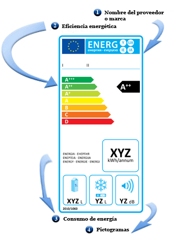 Antes de comprar un electrodoméstico debemos tener en cuenta que existen 7 clases distintas de electrodomésticos eficientes. Para identificar estos distintos tipos de electrodomésticos la Unión Europea ha regulado la llamada "etiqueta energética" mediante diversas directivas. Hasta 2010 la codificación tenía 7 categorías que iban desde la A en color verde hasta la G en color rojo, de mayor a menor eficiencia. En 2010 la Unión Europea emitió una directiva por la cual esta etiqueta sufría algunas modificaciones, las novedades que incorpora esta etiqueta son las siguientes: